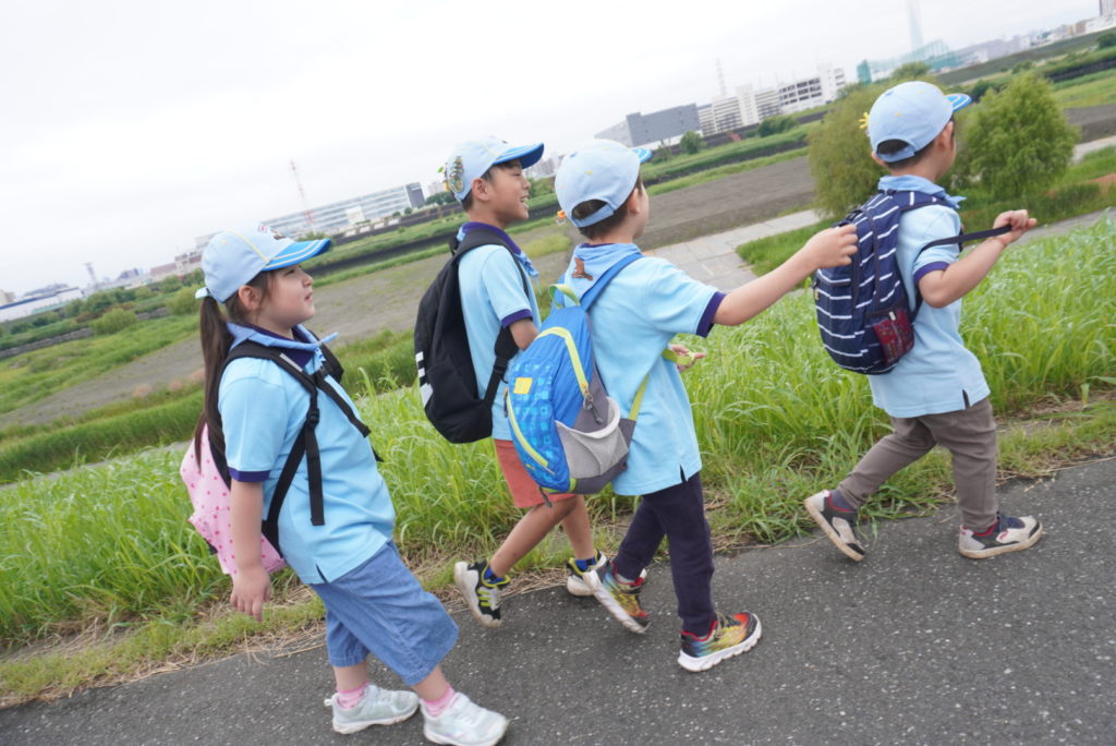 屋外で元気いっぱい遊びます。徒歩・バス・電車などなど移動手段は様々です。
