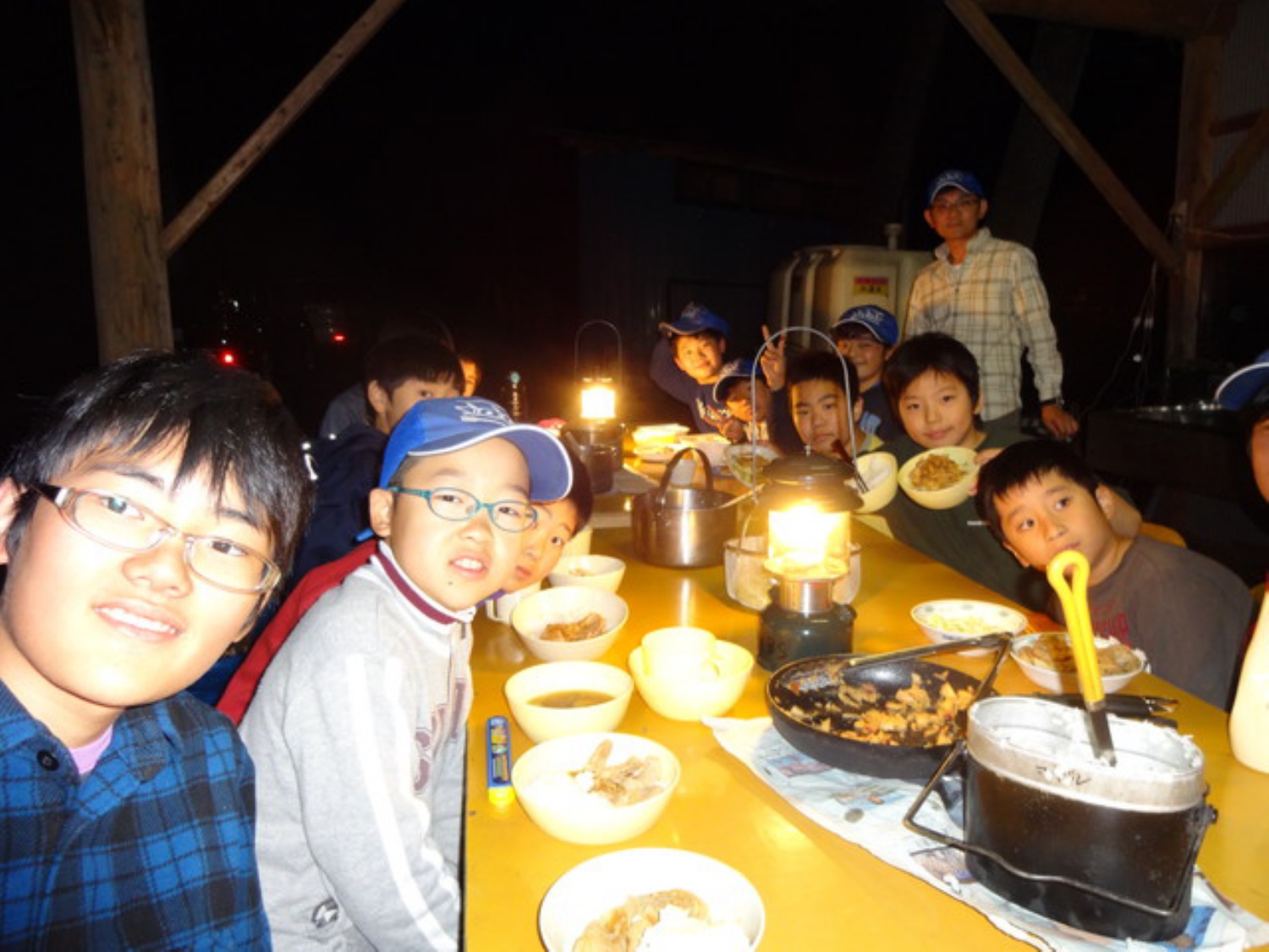 今回は2班に分かれて野外料理対決を行いました。より美味しい料理( ゚v^ ) を目指して競い合っていました。生憎の台風接近により、2日目は予定より一足早い解散となりました。