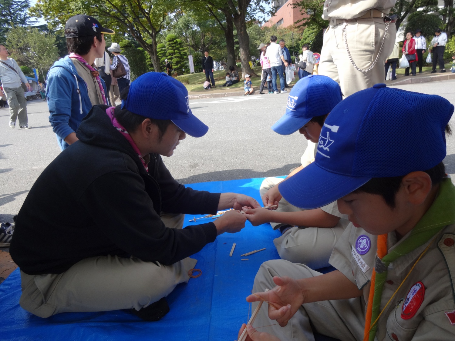 商工祭の会場まで読図を用いてハイキングを行いました。仲間を集めるため「ちかいとおきて」の実践を心がけ行動していました。
