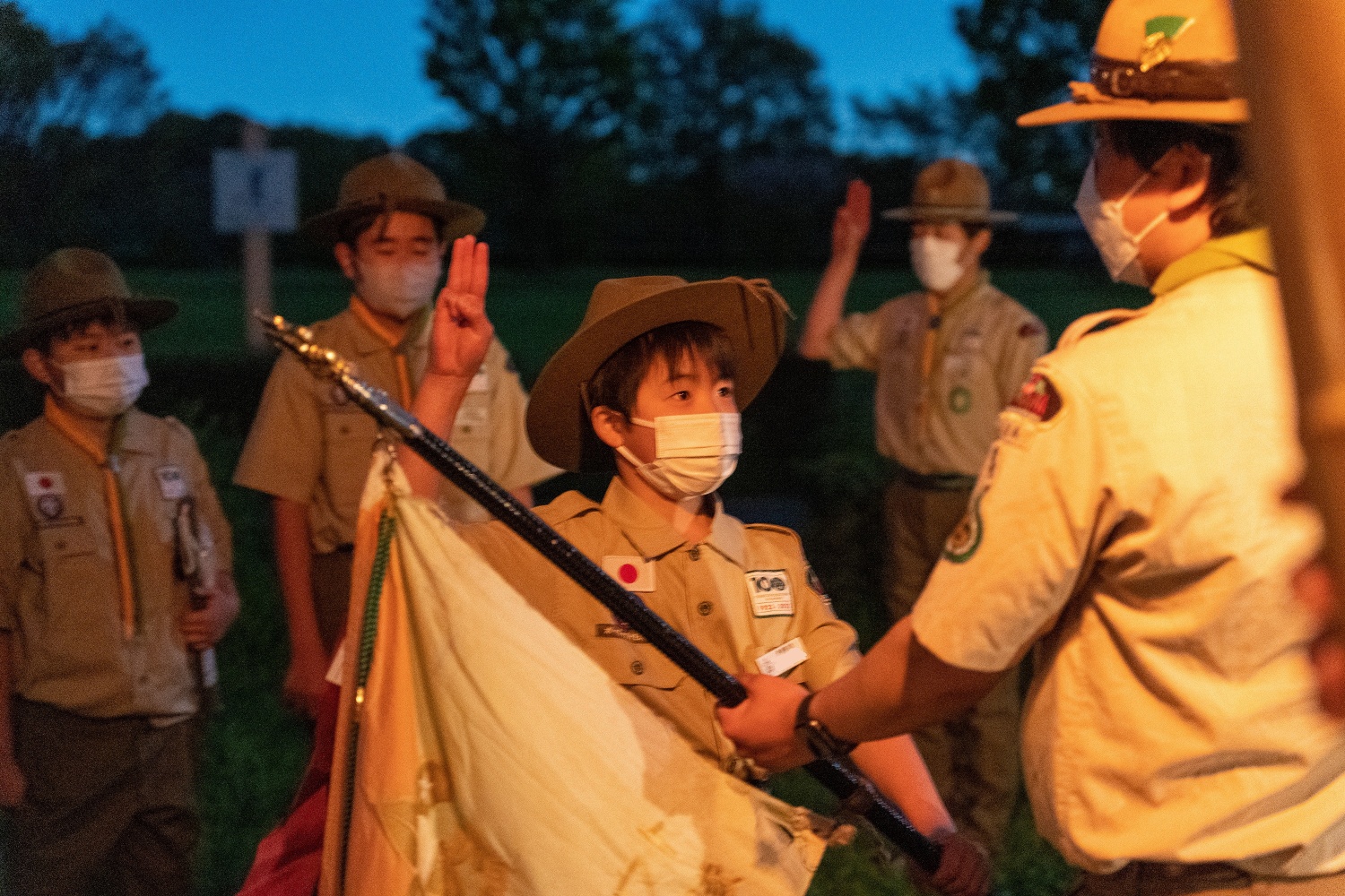 入隊式は厳かな雰囲気のもと催され、6名がちかいをたて正式にボーイ隊の仲間に加わりました。