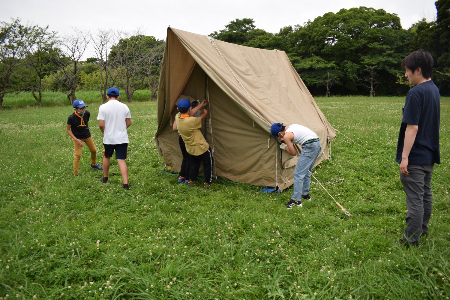 あいにく中学生は試験期間とかぶってしまいましたが、その分入隊組の小学生に野営指導を行うことができた集会でした。
