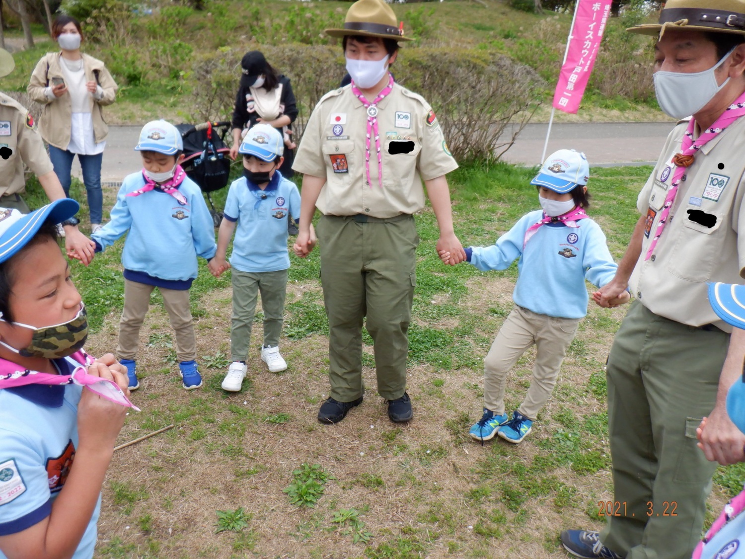 今日はビーバー隊の2021年度、最初の隊集会です。今回の集会では自分で弓矢を作って、森の探検をしたり、的あてをしました。さらに、今回は見学のお友達も10人以上参加してくれて、にぎやかな活動ができました。2021年度もビーバー隊は元気に活動をしていきますので、皆さん応援よろしくお願いします!