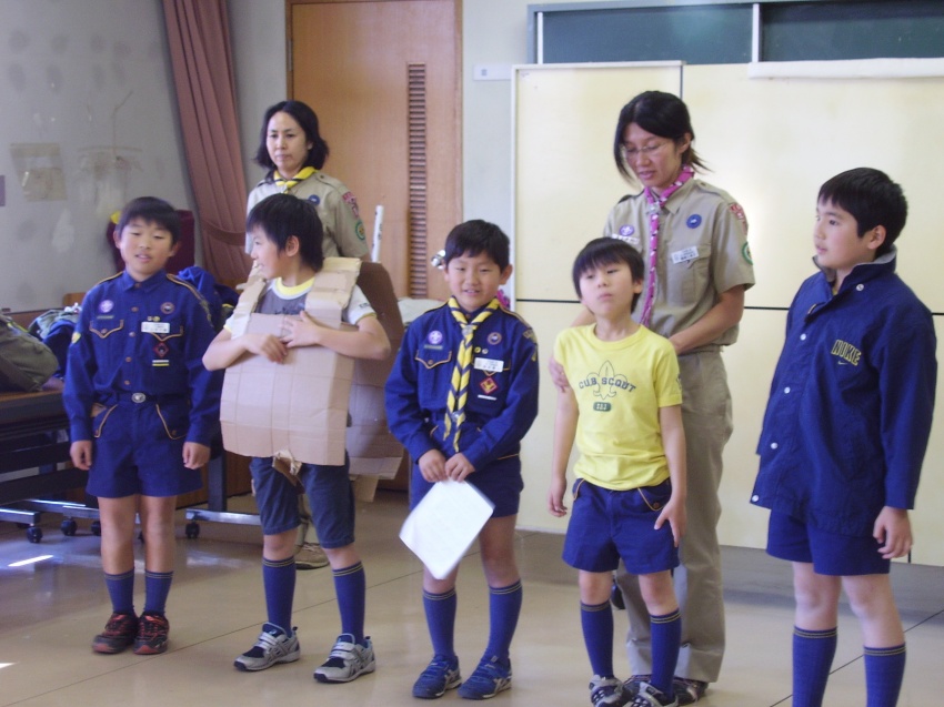 9月にカブ隊に上進する、3名のスカウトがりすの道を行いました。カブ隊の基本的なきまりについて、真剣に学んでいました。