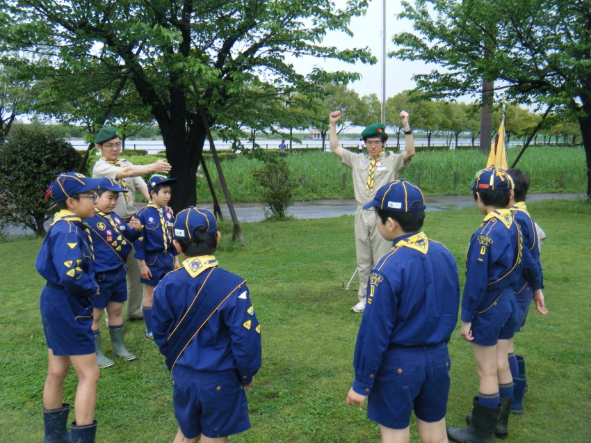 あいにくの雨により、5/4のみのデイキャンプになりました。道満グリーンパークにくまスカウトのみが集まり、BS隊の基本動作、国旗掲揚、ローピング等、BS隊への上進を視野に入れた活動を行いました。