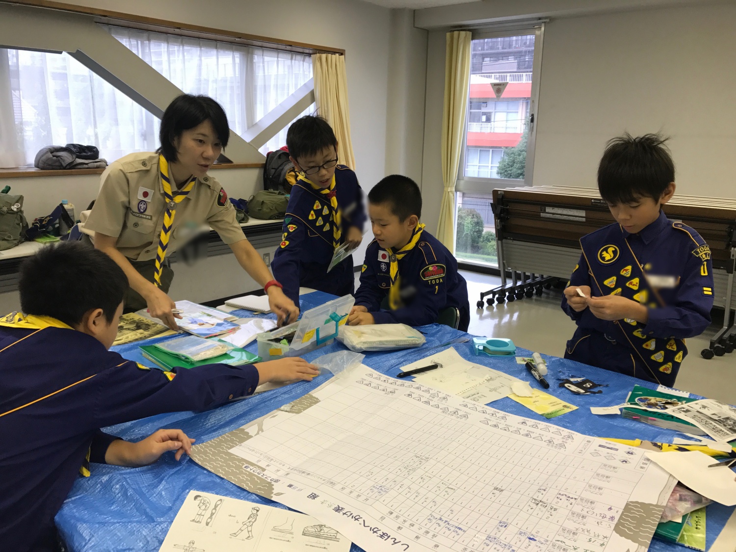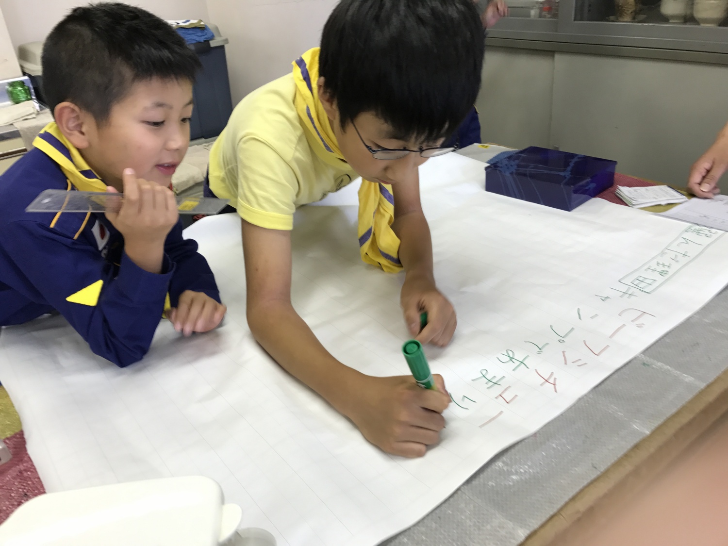 台風接近の為 室内での活動となりました。この日から組長次長が変わったので 午前中の組集会はカブ連の連絡と進歩壁掛表を書き ソングの練習と午後に行う計測の準備をしました。 午後の隊集会では計測で色々な部屋に行き計測を行いました。その後は計測を使った伝言ゲームなどをしました。