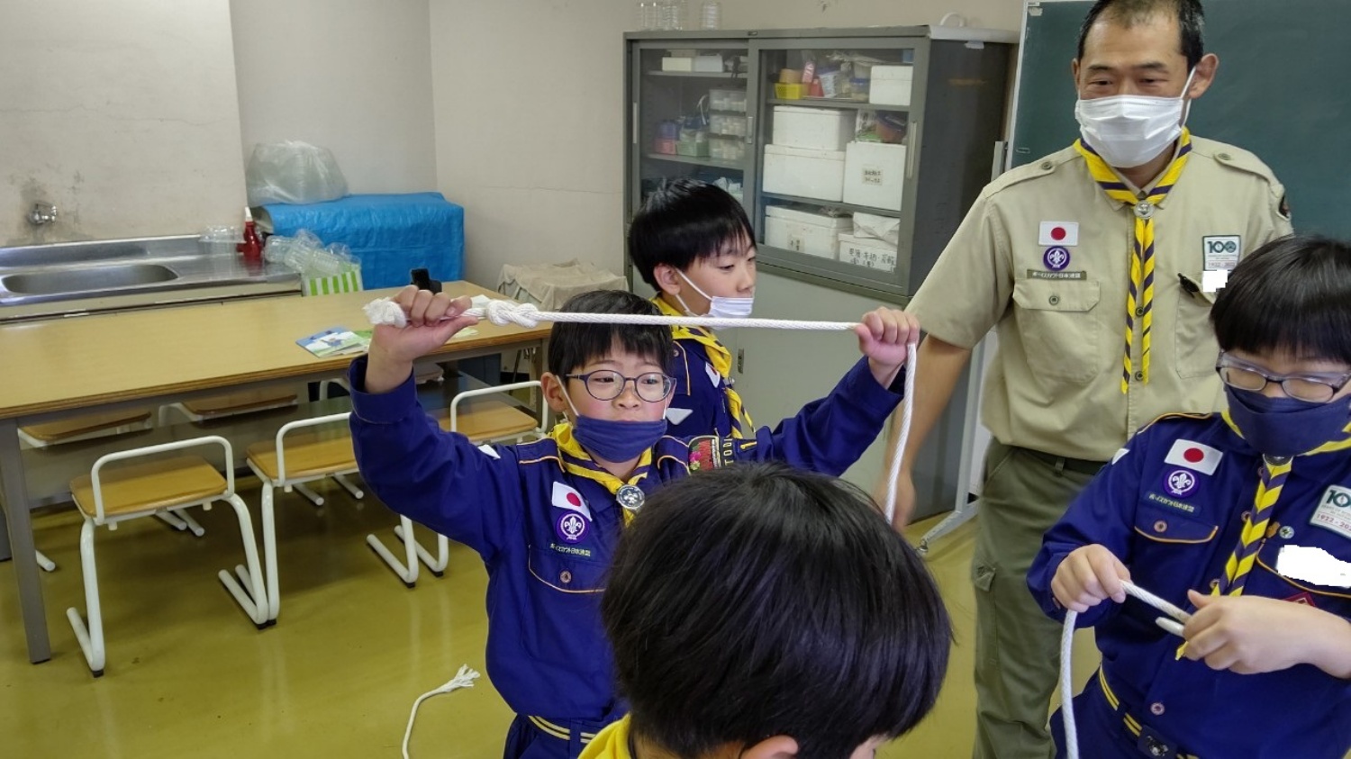 教えてもらいます。頑張ってカッコいいボーイスカウトになってね!