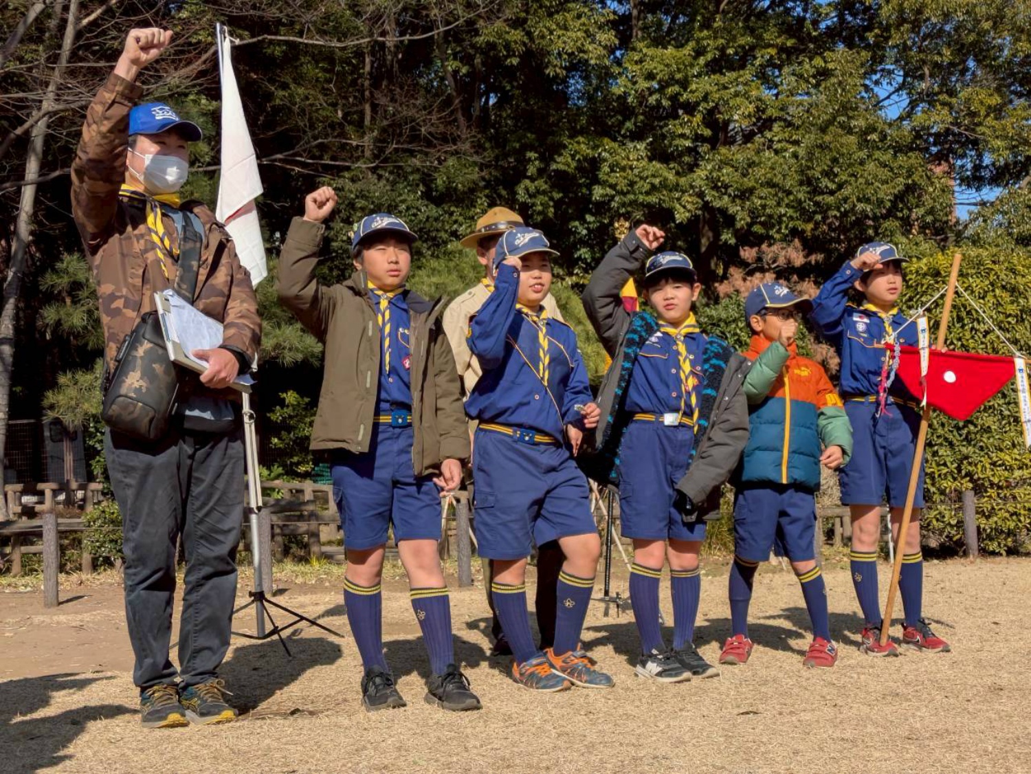 寒空の中、第一回目の月の輪集会を行いました。国旗掲揚、降納、基本動作、ちかいとおきて を学びました。終わったスカウト達は楽しかったとの感想でした。ボーイ隊上進へ向けてがんばって!!