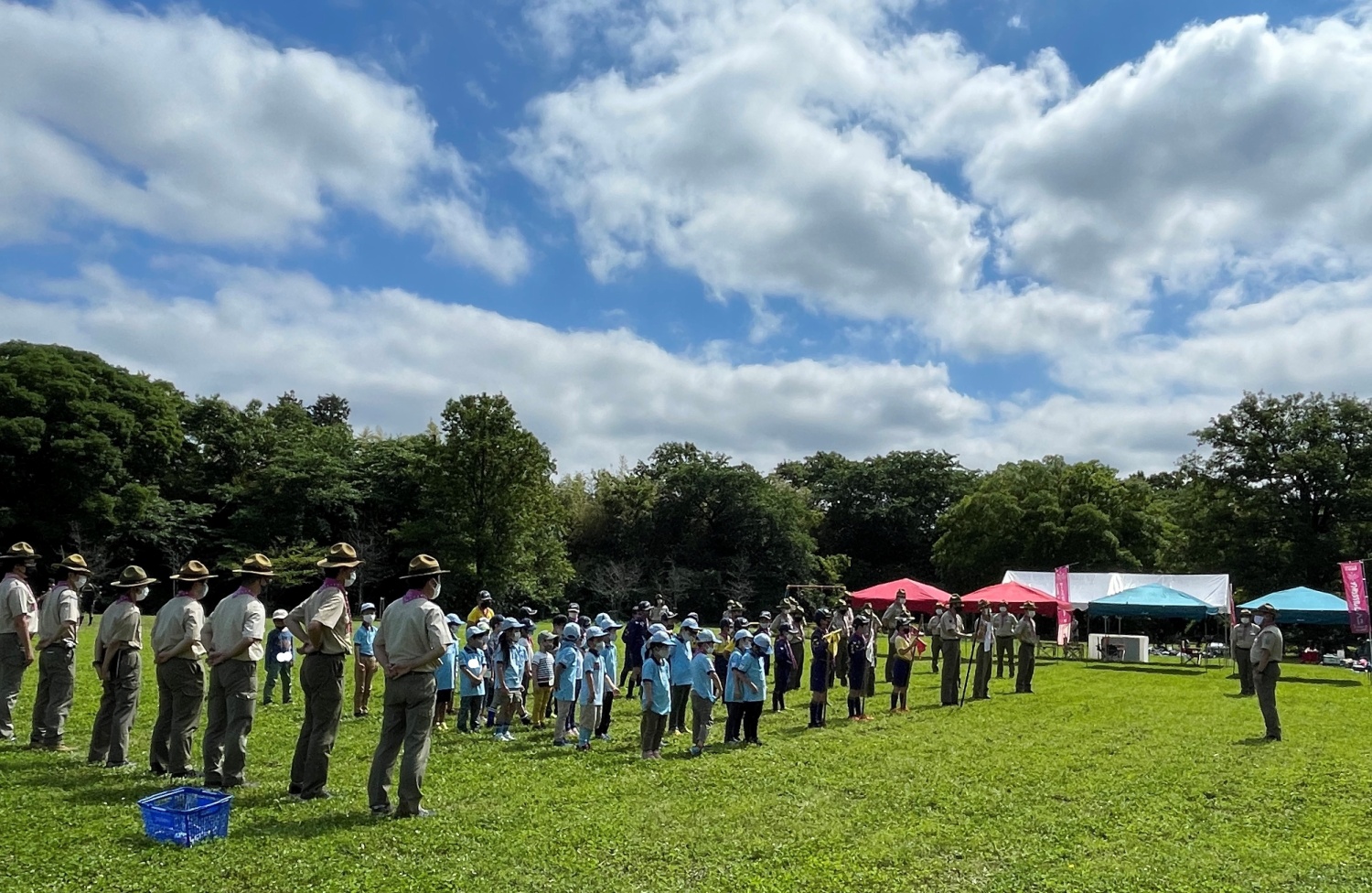 スカウト約60名、見学のお友達10名、指導者20名、総勢90名以上の参加でした。