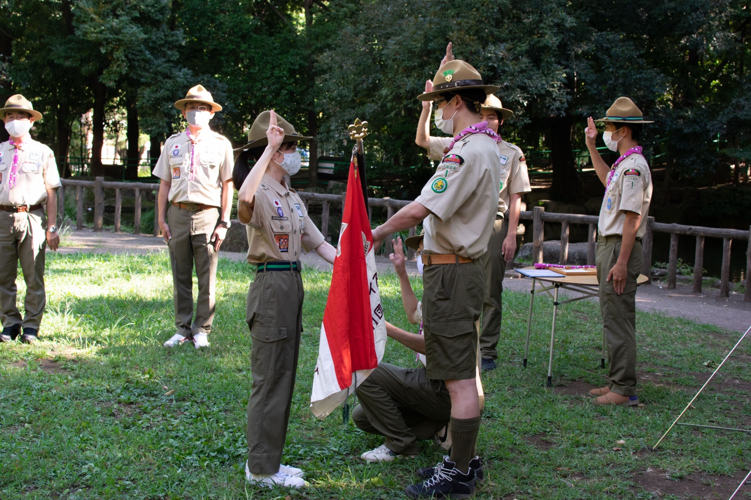 よく晴れた日、備品点検と入隊式を行いました。戸田1団初の女子スカウトの誕生の瞬間です。今回は動画と写真の両方があります。是非ご覧ください。